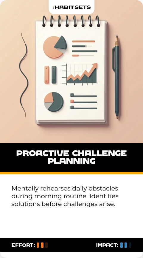 Mentally rehearses daily obstacles during morning routine. Identifies solutions before challenges arise.