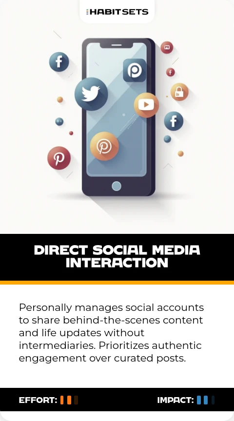 Personally manages social accounts to share behind-the-scenes content and life updates without intermediaries. Prioritizes authentic engagement over curated posts.