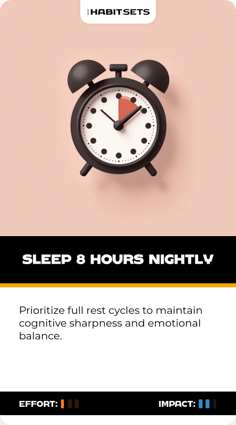 Prioritize full rest cycles to maintain cognitive sharpness and emotional balance.