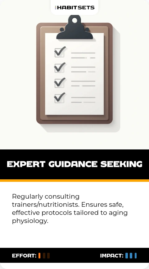 Regularly consulting trainers/nutritionists. Ensures safe, effective protocols tailored to aging physiology.