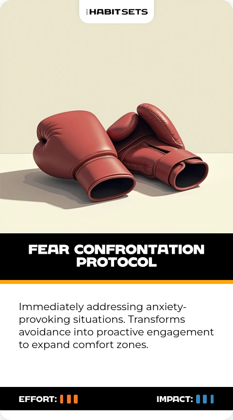 Immediately addressing anxiety-provoking situations. Transforms avoidance into proactive engagement to expand comfort zones.