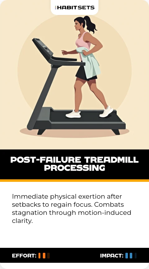 Immediate physical exertion after setbacks to regain focus. Combats stagnation through motion-induced clarity.